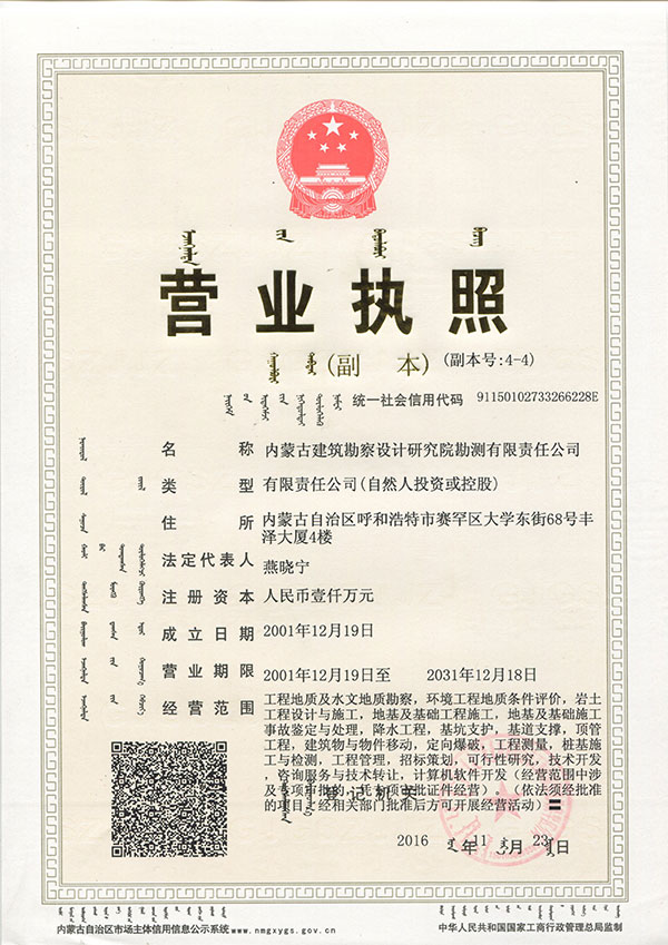 - 內(nèi)蒙古建筑勘察設(shè)計(jì)研究院勘測有限責(zé)任公司,是全國首家完成 轉(zhuǎn)企建制的省級(jí)建筑勘察設(shè)計(jì)單位。公司前身為內(nèi)蒙古建筑勘察 設(shè)計(jì)研究院勘測分院, 成立于1954年 ,經(jīng)過六十多年的發(fā)展, 現(xiàn)已成為全區(qū)技術(shù)力量雄厚、專業(yè)設(shè)置齊全的集巖土工程勘察 、 設(shè)計(jì)、治理、檢測、監(jiān)理、咨詢、水文地質(zhì)勘查、工程測量、科 研為一體的綜合性企業(yè) ... ... [查看詳情]