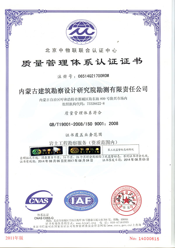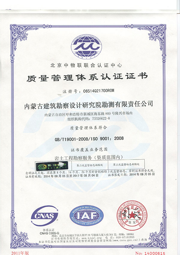 質(zhì)量管理體系認(rèn)證證書