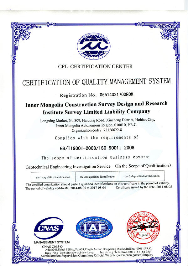 質(zhì)量管理體系認(rèn)證證書英文
